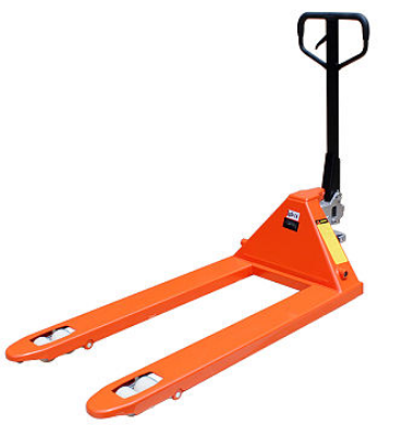 手動(dòng)地牛同樣依靠按動(dòng)手柄,在液壓的作用下提升貨叉的高度,貨叉上的貨物被載起,然后拉動(dòng)地牛來完成貨物的轉(zhuǎn)移。